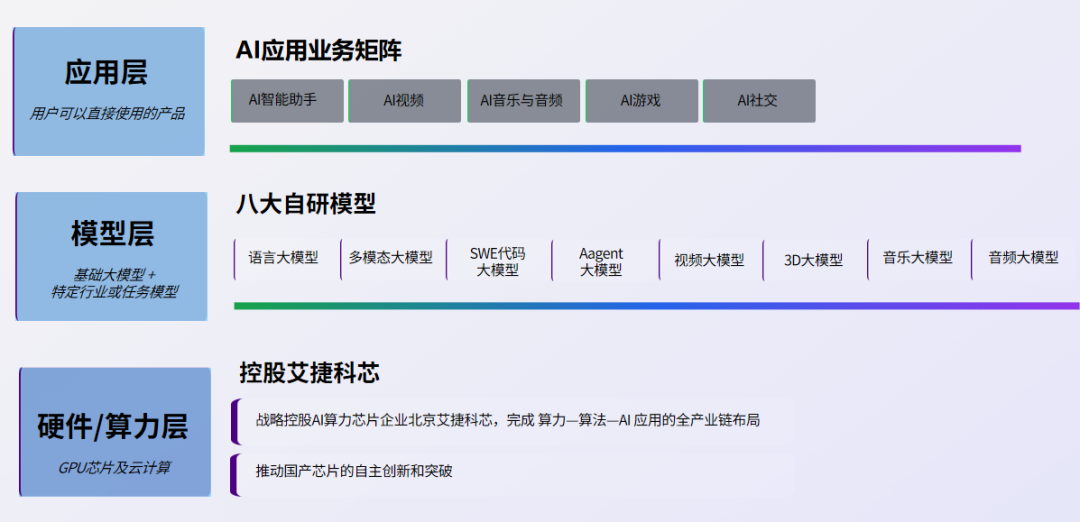 模子研发:领有八大自研模子,袒护多模态、视频生成、音频生成等标的。咱们的音乐生成模子是全球最初的模子之一。